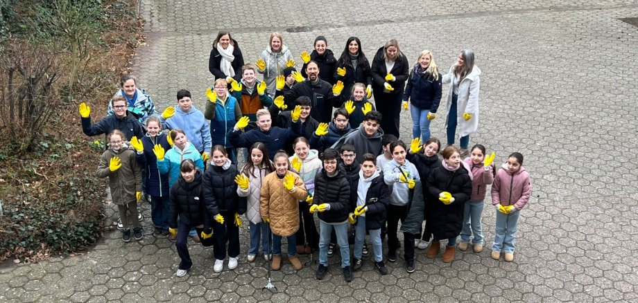 Jsme potěšeni nasazením našich žáků a rádi bychom poděkovali také podporujícím rodičům za jejich pomoc. Společně tak přispíváme k čistému Gronau. (Nádvoří)