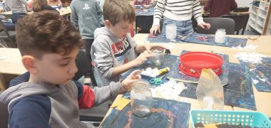 Τον Οκτώβριο του 2025, οργανώσαμε μια βραδιά ανάγνωσης στο σχολείο. Συναντηθήκαμε στη μεγάλη πύλη του σχολείου στις 6.00 το απόγευμα. Όλοι είχαν φορέσει άνετα ρούχα και κουβέρτες μαζί τους. Αρχικά, η κυρία Gerdes, η κυρία Duesmann και η κυρία Holtmann μας διάβασαν ιστορίες της Astrid Lindgren πριν βολευτούμε στις σπηλιές ανάγνωσης. Τέλος, απολαύσαμε όλοι μια νόστιμη πίτσα.