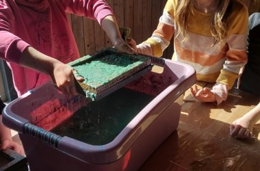 Επισκεφτήκαμε την εταιρεία διαχείρισης αποβλήτων Westmünsterland στο Gescher. Εκεί μάθαμε για πρώτη φορά πολλά για τον σωστό διαχωρισμό των απορριμμάτων. Στη συνέχεια έπρεπε να δοκιμάσουμε τις γνώσεις μας και να ταξινομήσουμε κάποια σκουπίδια στους σωστούς κάδους. Στη συνέχεια ξεναγηθήκαμε στον χώρο. Υπήρχαν πολλά φορτηγά με σκουπίδια στο δρόμο και άνθρωποι που ήθελαν να ξεφορτώσουν κάτι στο εργοτάξιο. Είχαμε μάλιστα τη δυνατότητα να παρακολουθήσουμε ένα απορριμματοφόρο να ξεφορτώνει όλα τα σκουπίδια. Στην επιστροφή πήγαμε με όλη την τάξη στις ζυγαριές των φορτηγών. Όλοι μαζί ζυγίσαμε 960 κιλά! Στη συνέχεια φτιάξαμε χαρτί. Για να το κάνουμε αυτό, σκίσαμε παλιές εφημερίδες και χρωματιστό χαρτί, το πολτοποιήσαμε σε πολτό και δουλέψαμε με καρέ-καρέ. Ο καθένας από εμάς έχει τώρα ένα χρωματιστό, ανακυκλωμένο φύλλο χαρτιού.