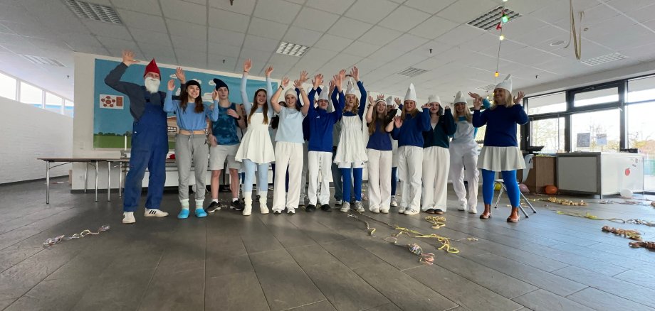 On Thursday, 27.02.2025, lots of cheerful Smurfs were delighted to be visited by dancing princesses, TicTacs, angels and other mythical creatures and characters from the series, because as every year, the student council - dressed up as Smurfs this year - invited pupils from years 5-7 to the carnival in the school canteen, which had been transformed into a colorfully decorated dance floor with lighting effects, fog and a candy counter for the occasion. In addition to cheerful polonaises and lots of dancing, classes played 1,2 or 3. As the most successful class, 5A won a breakfast with the SV, which is already looking forward to a new edition of the traditional lower school carnival in 2026. (Spr)