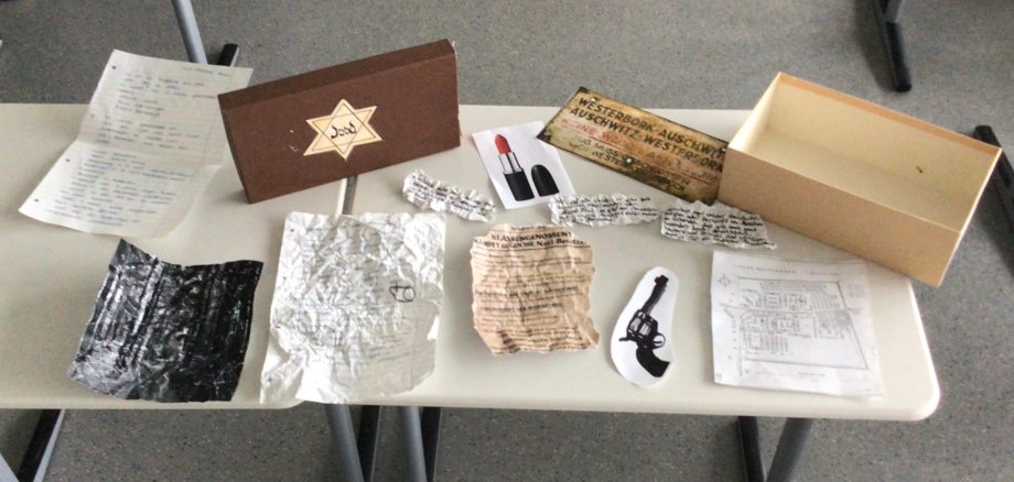 Dans le cadre des journées de projet de la semaine dernière, un groupe de projet s'est penché sur les sœurs Freddie et Truus Oversteegen, qui ont mené une résistance militante contre l'occupant allemand alors qu'elles étaient adolescentes. Nous avons lu des extraits du roman "Parler, c'est trahir" de Wilma Geldof, recherché des informations de fond sur l'histoire des Pays-Bas entre 1940 et 1945 et fabriqué en petits groupes des mallettes de musée pour rendre l'histoire de l'époque plus concrète.