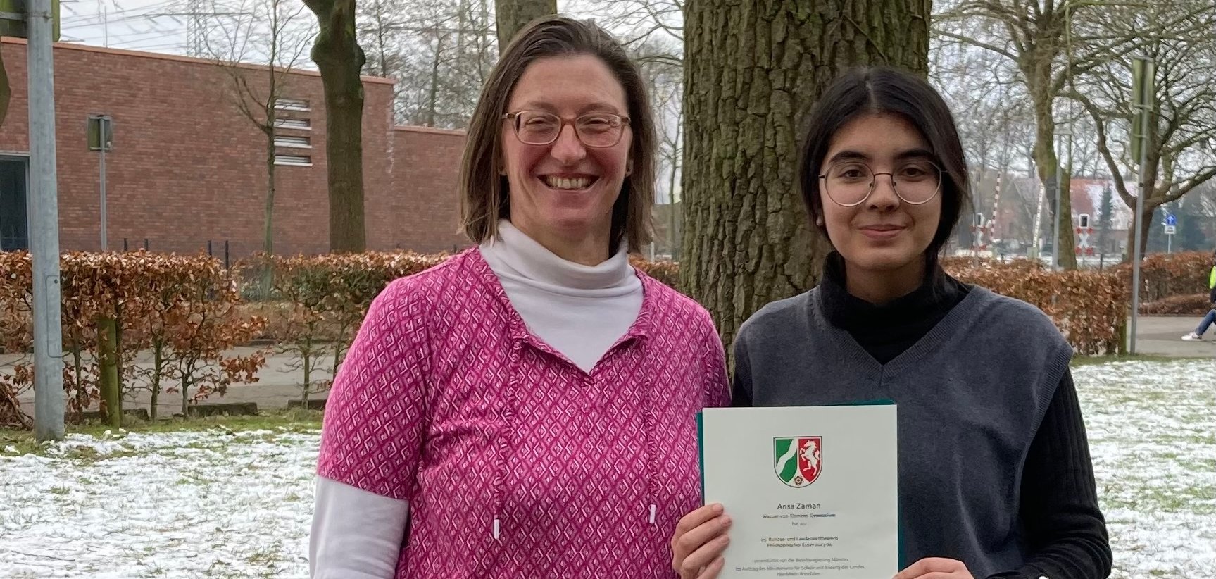 Stella Klein Menting, a 9d. évfolyam tanulója kiemelkedő sikernek örülhet, hiszen Észak-Rajna-Vesztfália tartományban második helyezést ért el az országos latin SOLO versenyen, és ezzel a tartomány egyik legjobb tanulója lett a klasszikus nyelvek területén.