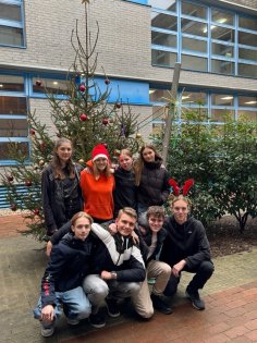 Sekali lagi tahun ini, OSIS mengadakan acara pra-Natal dengan memasang pohon Natal yang sudah menjadi tradisi. Kami ingin menggunakan kesempatan ini untuk berterima kasih kepada Pak Weiß yang sekali lagi menyediakan pohon Natal. Kebetulan, pohon tersebut adalah pohon asli Gronau dalam arti yang sebenarnya. Sama seperti para pembantu yang bekerja keras, termasuk Pak Elskamp dan beberapa murid SV, yang membantu memasang dan menghias pohon tersebut. (BUS)
