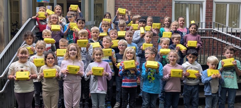 Som de har gjort de siste 12 årene, var ekteparet Gartmann tilbake på skolen vår i dag for å presse eplejuice sammen med førsteklassingene og noen foreldre. Først ble eplene kuttet i små biter og deretter hakket to ganger før de ble puttet i saftpressen. Saften ble presset ut med forenede krefter. Deretter ble den silt, og til slutt fikk hvert barn tappe sin egen ferskpressede eplejuice på flaske.