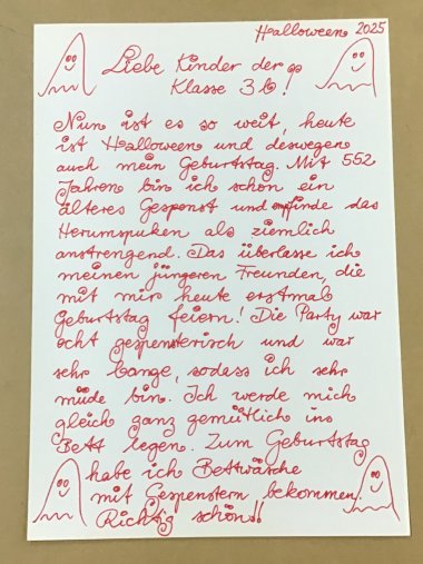 I oktober 2025 arrangerte vi en lesekveld på skolen. Vi møttes ved den store skoleporten kl. 18.00. Alle hadde med seg koselige klær og tepper. Først leste fru Gerdes, fru Duesmann og fru Holtmann historier av Astrid Lindgren, før vi satte oss godt til rette i lesehulene våre. Til slutt koste vi oss med en deilig pizza.