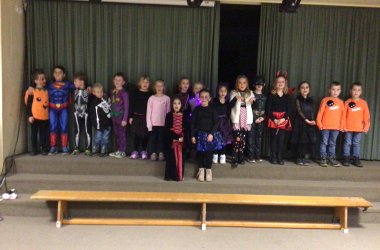 31 октября 2026 года мы отпраздновали нашу первую классную вечеринку. Все было украшено к Хэллоуину и хорошо подготовлено. Здесь были паутина, маленькие и большие пауки, большие тыквы, мумии и привидения. Все дети и некоторые родители пришли в костюмах. Было и небольшое представление: скелетный танец. После танцев было много игр, разговоров и смеха. Это была отличная вечеринка класса!