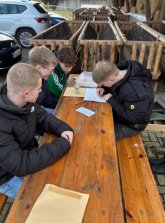 Drugi dan projekta se je naše delo iz učilnice preselilo na prosto. Cilj ni bil le teoretično obravnavati temo vode, temveč jo raziskati in izkusiti neposredno na terenu v Gronauu. Skupaj z učiteljem Adamskyjem smo se odpravili skozi mesto. Ustavili smo se na različnih postajah, da bi izvedeli več o posameznih krajih in njihovem pomenu za vodo v regiji. Gospod Adamsky in Max sta nam razložila posebnosti vsake lokacije in nam posredovala dodatne informacije o razvoju in uporabi vode.