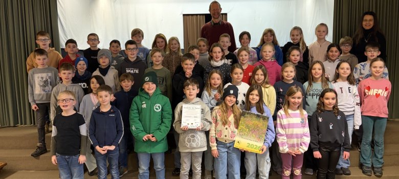 Idag tog vi igen den inställda utflykten från den andra klassen: Vi promenerade till familjen Meyers potatisland. Väl där fick vi först lära oss mycket om potatis och hur den odlas. Vi kunde också upptäcka många olika sorter i jorden. Sedan fick vi ta en närmare titt på den stora skördemaskinen och till och med klättra upp på den en gång. Var och en av oss skördade en påse full med potatis. I morgon ska vi laga goda klyftpotatisar och avnjuta dem med äppelmos och örtdipp.