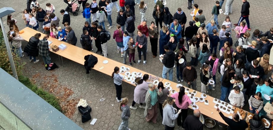 9 月 26 日星期五,为庆祝跨文化周,学校操场上再次举办了美食集市活动。在两个主要休息时间,家长和学生们,特别是格罗瑙的阿拉姆/叙利亚东正教社区,帮助和准备了来自不同国家的美味佳肴。只需捐献一欧元,学校社区不仅能满足自己的味蕾,品尝到国际美食,还能帮助那些餐桌上没有那么丰盛的人。更确切地说,捐款所得将捐给格罗瑙食品银行。